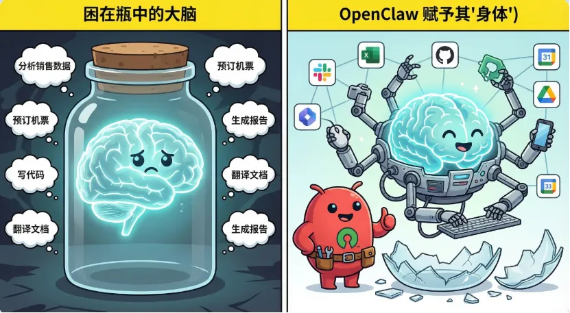OpenClaw = 给 AI 大模型装上"身体"的开源项目。