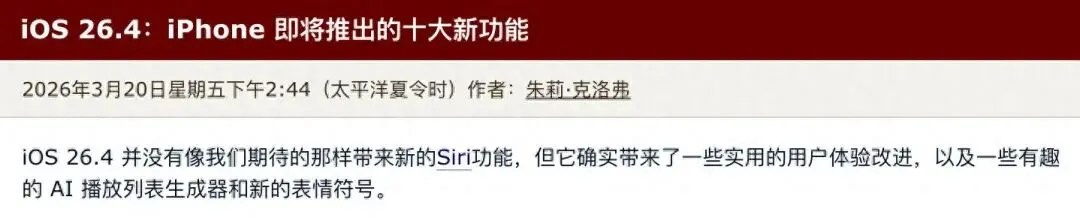 综合来看,iOS 26.4就是一个为了稳定性和安全性查漏补缺的版本。