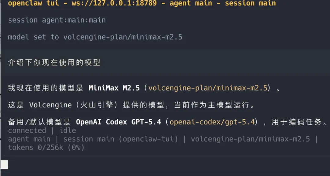我现在使用的方舟 Coding Plan 当中,最常用来管理我日常任务的则是Doubao-Seed-2.0-Code 和 MiniMax M2.5,中大型编程任务则会用 🦞 调用 Codex Cli 来管理。