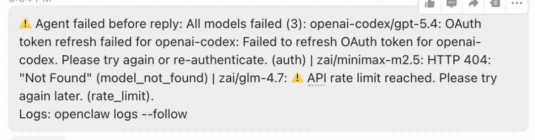 就在上周,OpenClaw还拉爆了我的 GPT Plus 和 GLM 订阅…… 这是我开启订阅半年以来头一次遇到。