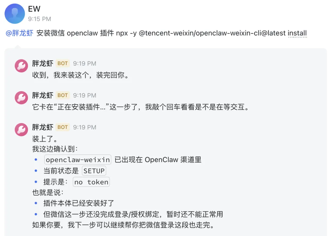 这两天,我也凑热闹尝试了OpenClaw的微信插件。安装和登录过程完全由我的 🦞 处理,我就负责扫个登陆码,配置非常顺利。