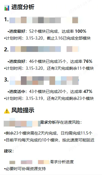 2、在钉钉开发者后台新建应用,获取对应的 ClientID 与 ClientKey;3、在 OpenClaw 网页后台填入 ID 和 Key 完成绑定;4、重启网关后,即可在钉钉里直接向小龙虾发指令。配置成功后,日常使用感受比较直观:在钉钉里对话,体验上和普通 AI 聊天工具接近,更像是一个可以随时召唤的助手。对项目管理工作而言,大部分指令都是即时性、轻量化的,很少需要那种 “下达一个任务让 AI 跑一整夜” 的长流程任务,这类长链路对话目前小龙虾的表现也并不稳定。之后我参考了「钉钉 AI 表格 × OpenClaw」的相关文档,进一步配置了表格读取与分析能力,这部分实际使用价值更明显。配置完成后,可以直接让小龙虾读取钉钉 AI 表格里的项目数据,自动生成分析报告,比如: