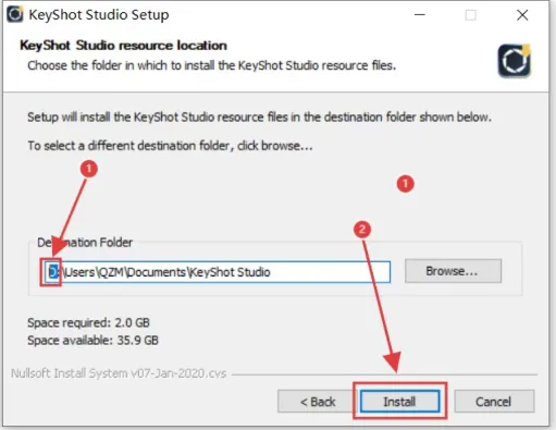 8.继续修改安装路径:把地址栏中的首字母C改成D,则代表软件将安装到D盘,然后点击【Install】。(安装路径和文件夹不要有中文,否则可能会安装异常)