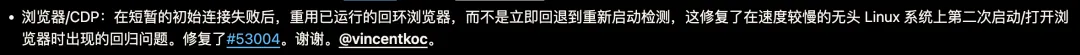 另外,Headless Linux 环境里第二次启动浏览器总是失败的问题也修掉了——原本一旦短暂连不上就直接放弃重新检测,现在会先复用已有的浏览器实例。