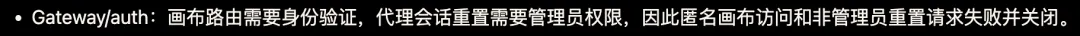Canvas 路由现在强制需要认证,Agent Session 的重置接口也加上了管理员权限校验,匿名请求和非管理员的重置请求都会被拒绝。