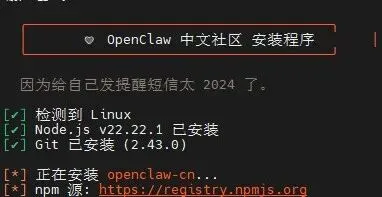 运行 OpenClaw 中文社区版的官方一键安装脚本: