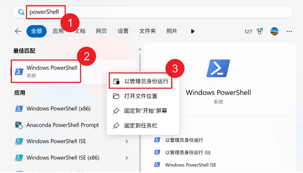 在管理员PowerShell窗口中,依次执行以下两条命令:Set-ExecutionPolicy RemoteSigned -Scope CurrentUserSet-ExecutionPolicy-ScopeProcess-ExecutionPolicy Bypass安全提示:这些命令只会影响您自己的账户,不会影响系统安全或其他用户。执行一键安装命令
