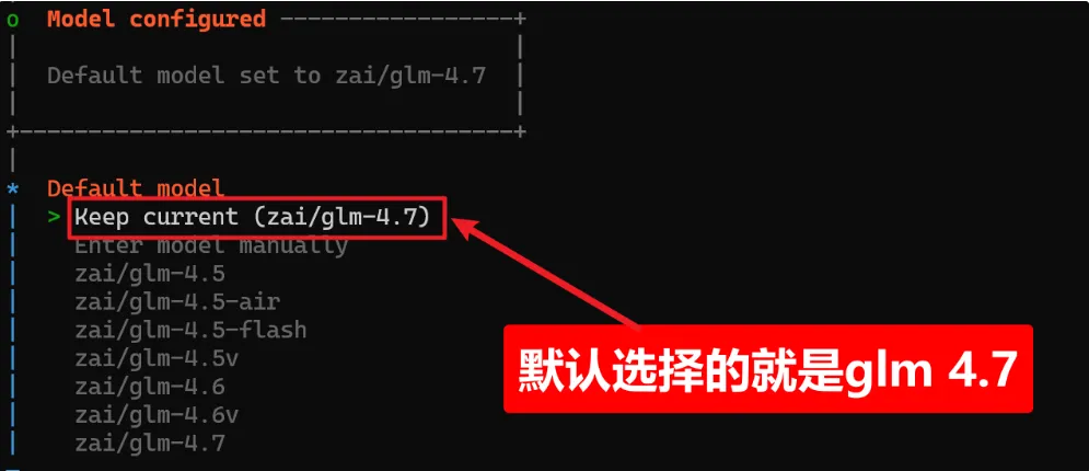 这里我选择默认的GLM 4.7,也是智谱当前的旗舰模型连接即时通讯平台