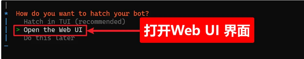同时,大约过30秒左右,我们回到刚才的设置窗口,选择"Open the Web UI",打开OpenClaw的UI界面:测试一下