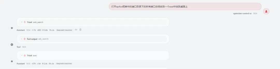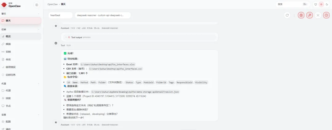 下面是我让他帮我把我的APIFOX中接口总结放到execl文件中并放到桌面上
