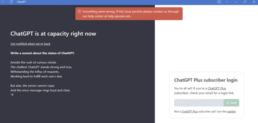 昨晚半夜ChatGPT突发全站宕机,弹窗报错直接瘫痪,付费用户也无法使用,#ChatGPT宕机#瞬间冲上热搜。