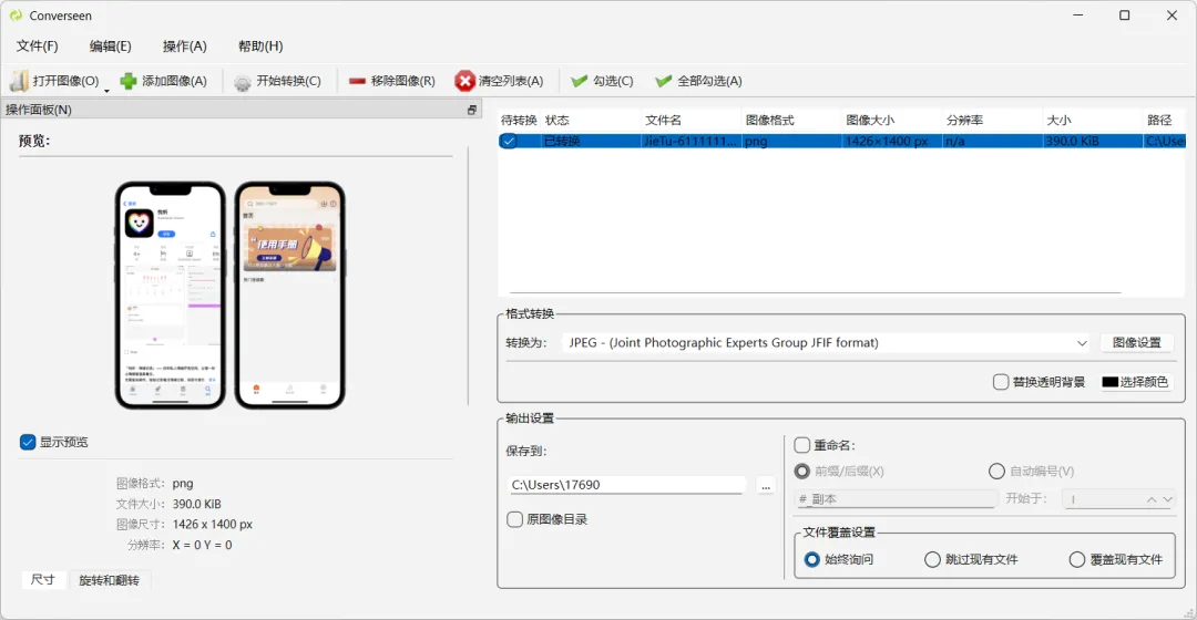 Converseen 是一款免费开源的批量图片处理工具,基于强大的 ImageMagick 引擎开发,支持 100+ 种图像格式。软件主打批量转换与图片处理功能,可以轻松完成图片格式转换、缩放、旋转、重命名等操作,非常适合日常图片处理与批量处理需求。