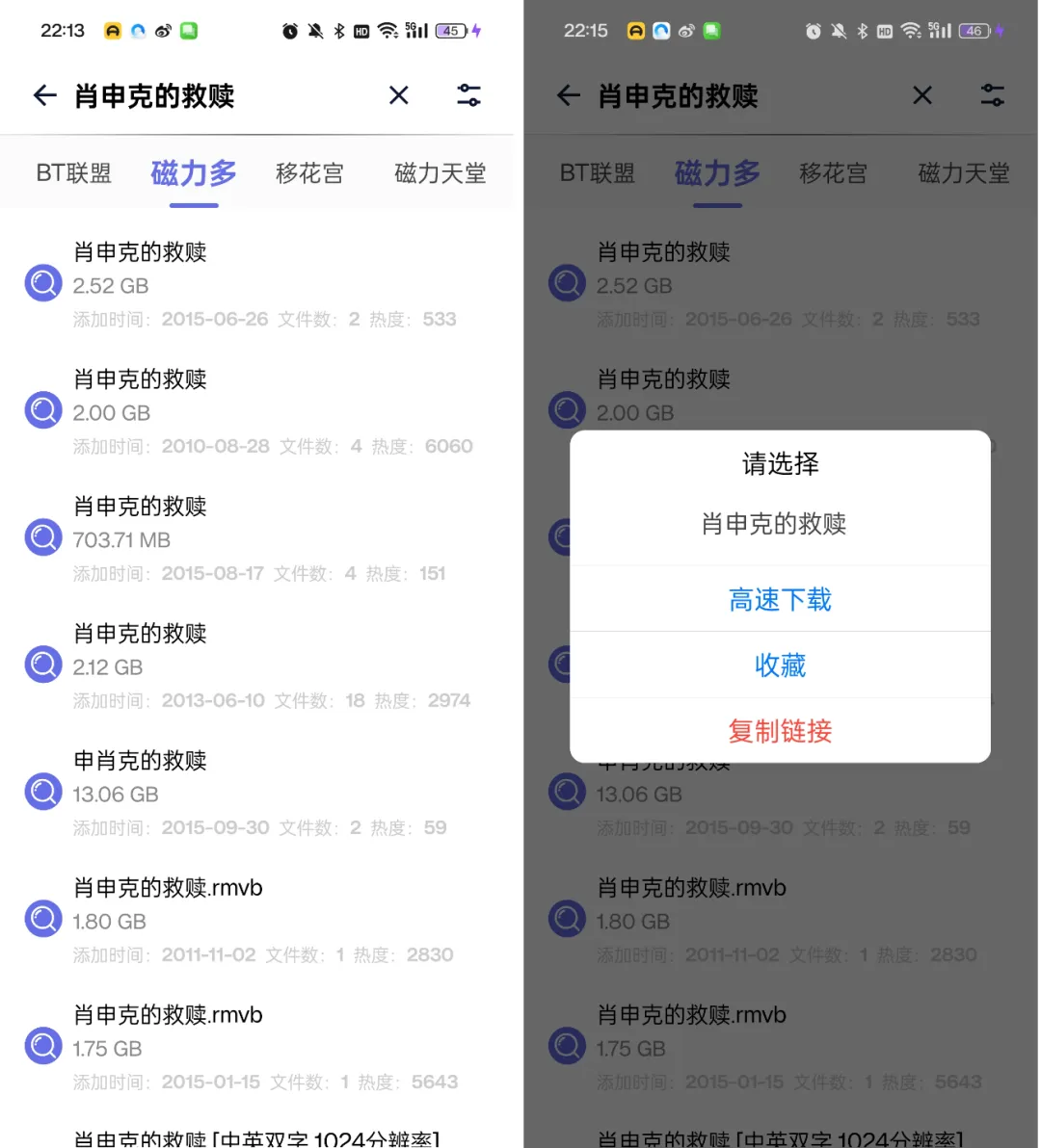 搜索出结果之后,你就可以把它复制粘贴到像”某雷“这种磁力下载工具里进行下载操作啦~毕竟再好的搜索工具,下载工具才能发挥出他的最强潜力。