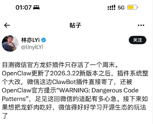 也有不少养虾人开始认真思考:接入微信固然方便,但这种深度绑定,是不是也意味着更多的风险?