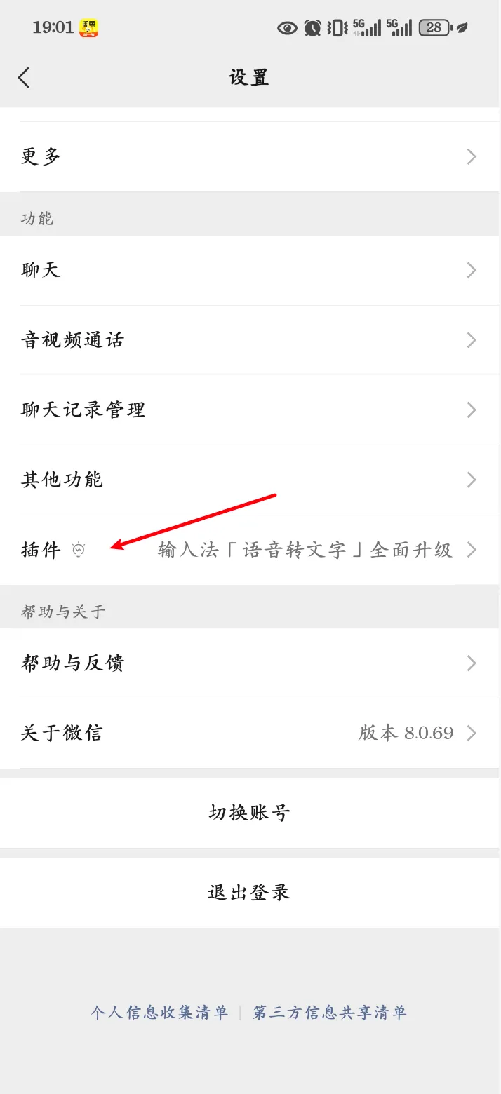 微信 -> 我 -> 设置 -> 插件