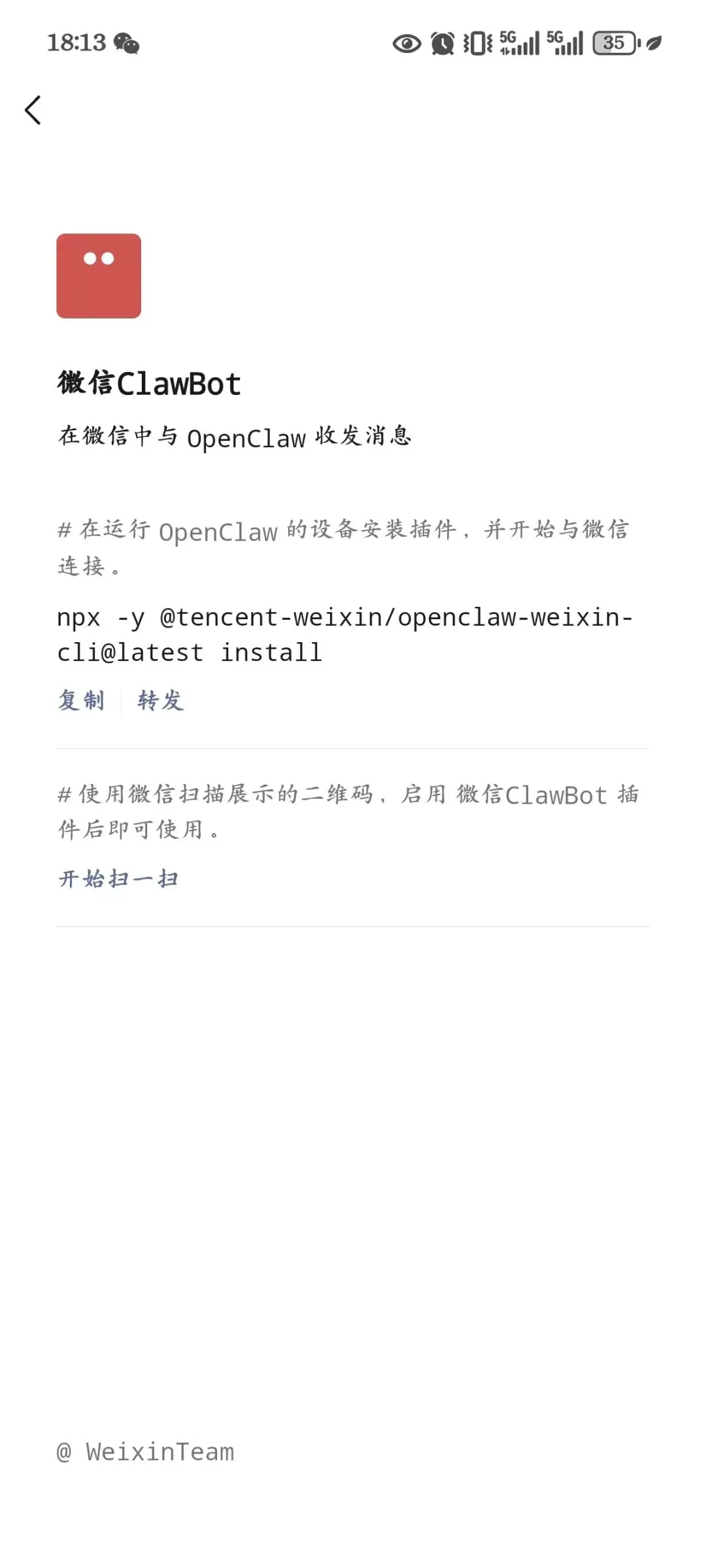 - ClawBot:微信官方插件入口