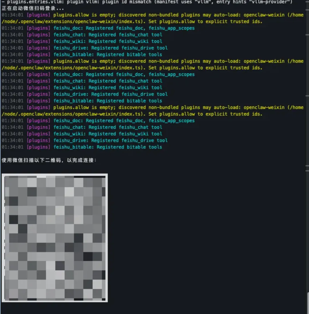 npx -y @tencent-weixin/openclaw-weixin-cli@latest install执行完成后,终端会生成二维码。