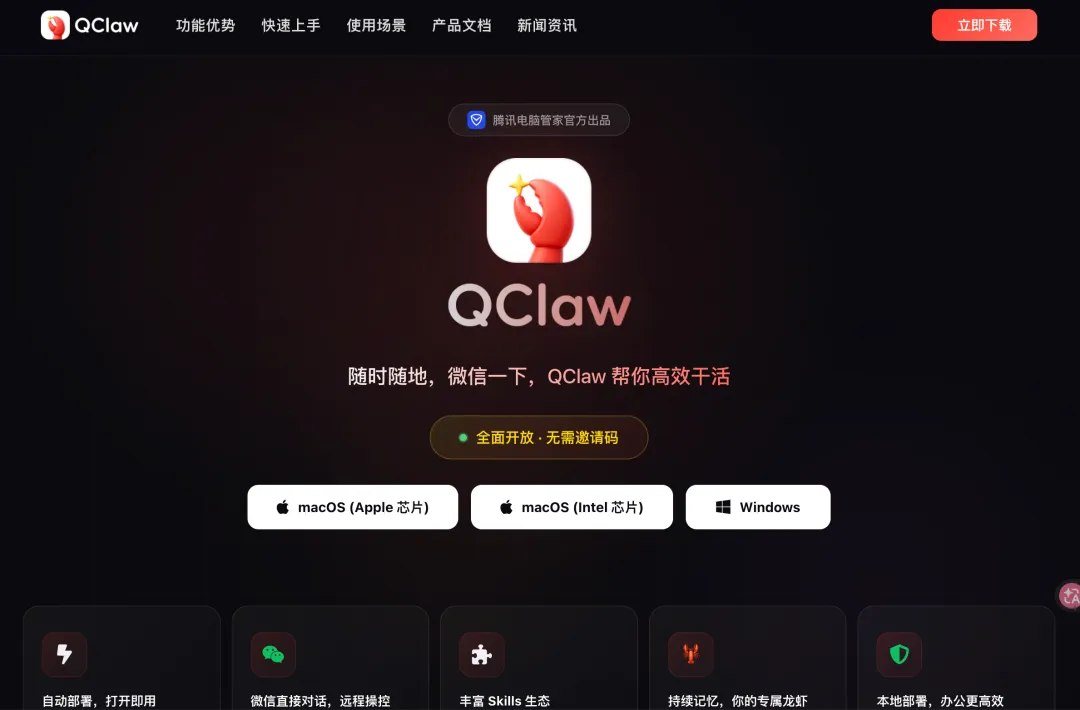 QClaw 的关键词不是“微信官方插件”,而是轻量封装、低门槛、尽快用上。