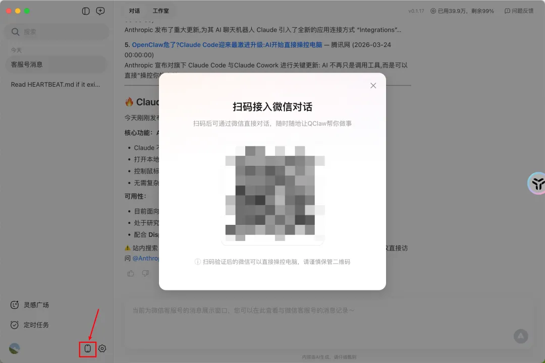 按界面提示,把微信和 QClaw 关联起来。