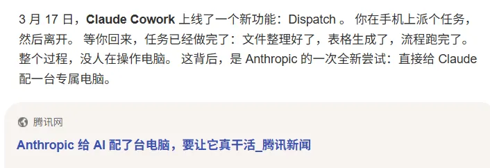 更狠的是,它还接入了3月17日刚上线的Dispatch功能。