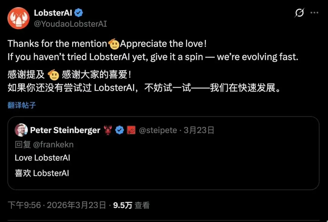 最近AI圈“龙虾大战”真的很热闹,OpenClaw创始人Peter在点评国内31款AI智能体时,公开点名网易有道LobsterAI,称它是最喜欢的本土化产品。