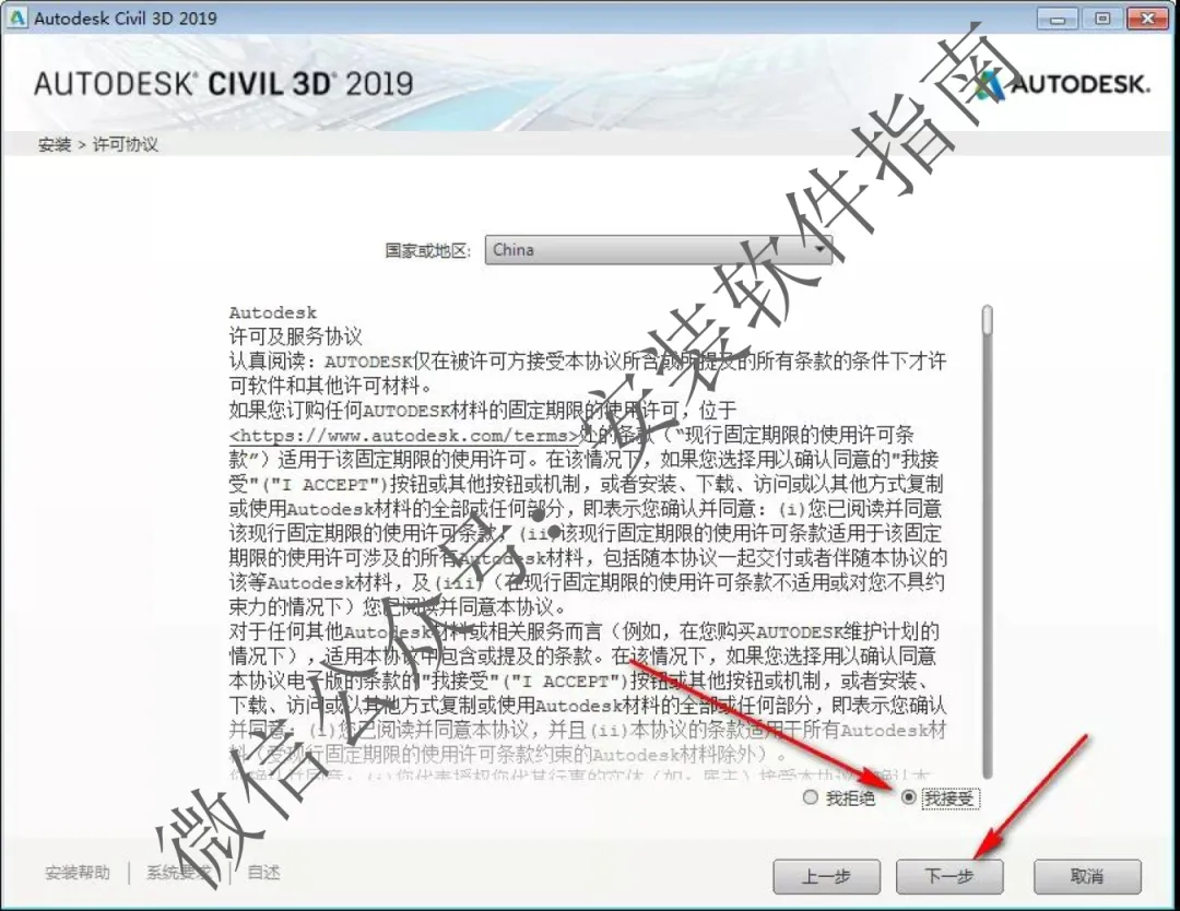 5、点我接受,然后点下一步