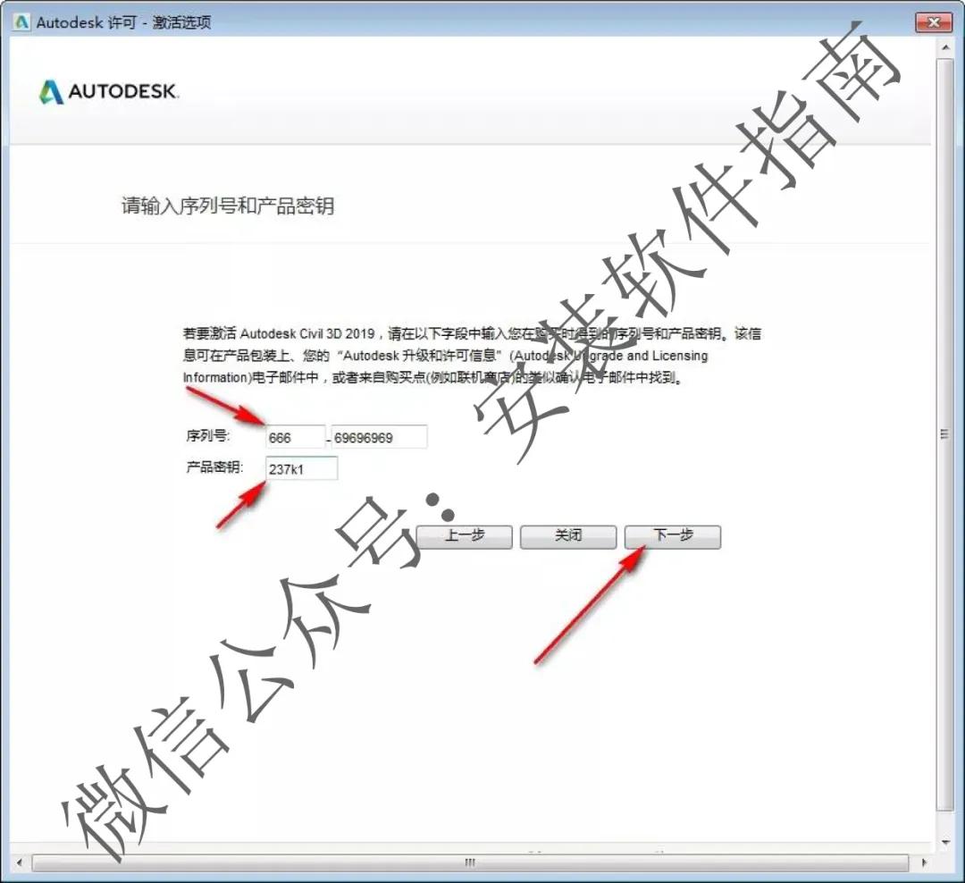 16.输入序列号:666-69696969,密钥:237k1,点下一步