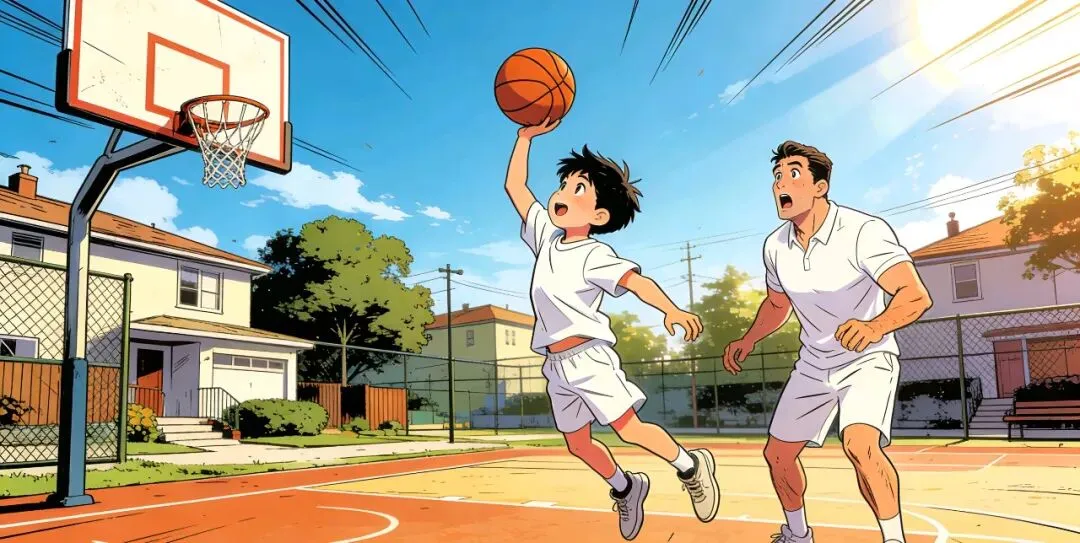 这个周六,他爸爸上来看他!我提议,让他们去打篮球!