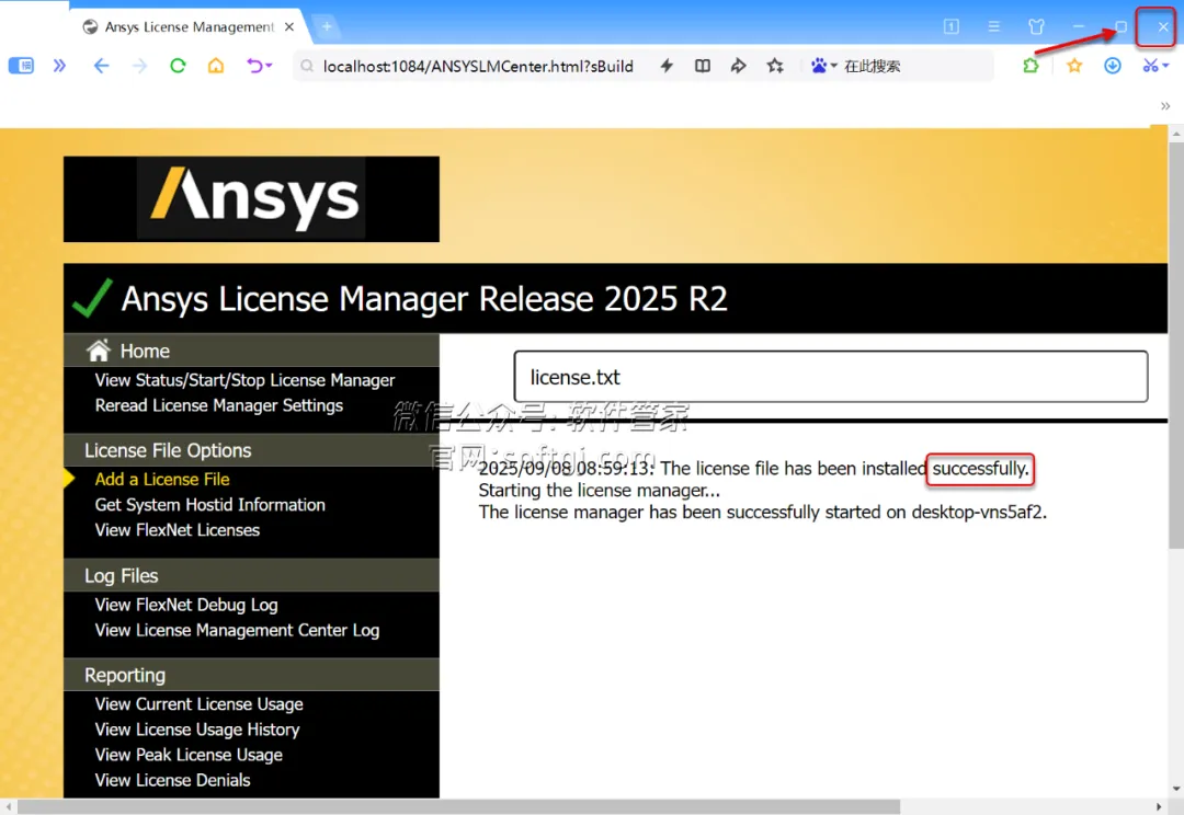 25.当提示”……installed successfully“,点击左上角【X】退出。
