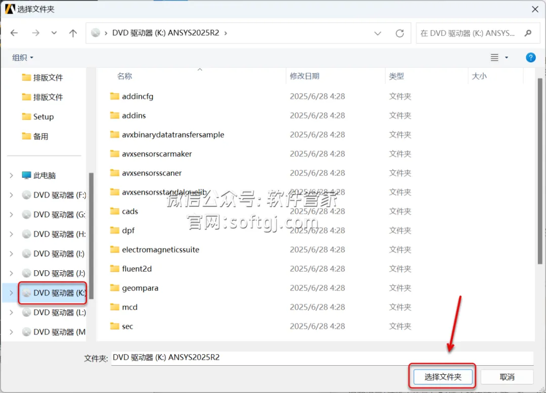 23.选择安装包解压后的【ANSYS2025 R2(64bit)】文件夹中【Crack】文件夹下的【license】,点击【打开】。