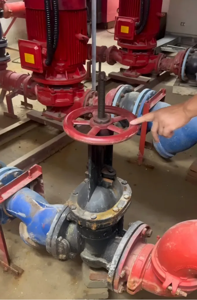 出水端明杆闸阀的核心作用是控制出水主管路的启闭,方便后期水泵、止回阀、管路的检修和维护,明杆设计能直观看到阀门的启闭状态,确保火灾时阀门处于全开状态,保证供水畅通。
