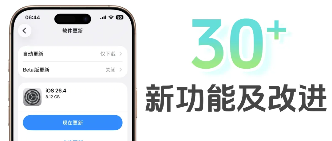 3月24日消息:来了!刚刚,苹果发布了iOS26.4的正式版更新,新的版本号为23E246,相对iOS26.3正式版,本次更新带带来了30多项新功能及新改进。