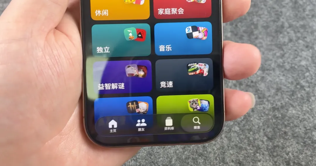 iPhone自带的游戏APP也获得了同步更新,搜索按钮也被整合到了菜单栏中,「搜索框」也被迁移到了顶部。