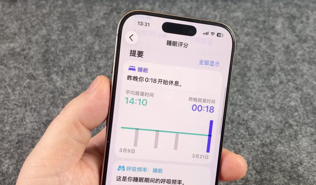 在自带的健康APP的睡眠评分项目下,新增了一个「平均就寝时间」的统计列表,这里统计了我们过去两周的平均就寝时间。