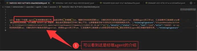 每个Agent创建后,会在 ~/.openclaw/agents/目录下有自己的文件夹(比如manager、researcher、coder)。