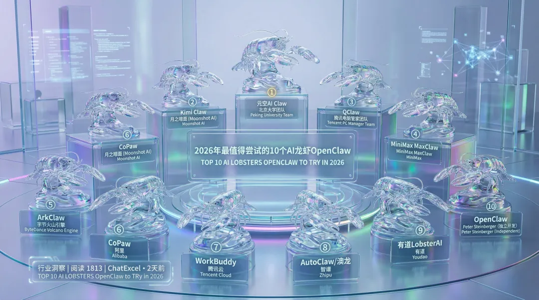简要列举:北京大学研发元空AIclaw,腾讯推出Q Claw,MiniMax旗下拥有Max Claw,月之暗面开发Kimi Claw,阿里Copaw 与腾讯云workbuddy,还有涵盖智谱autoclaw、有道lobsterAi、字节火山arkclaw等。