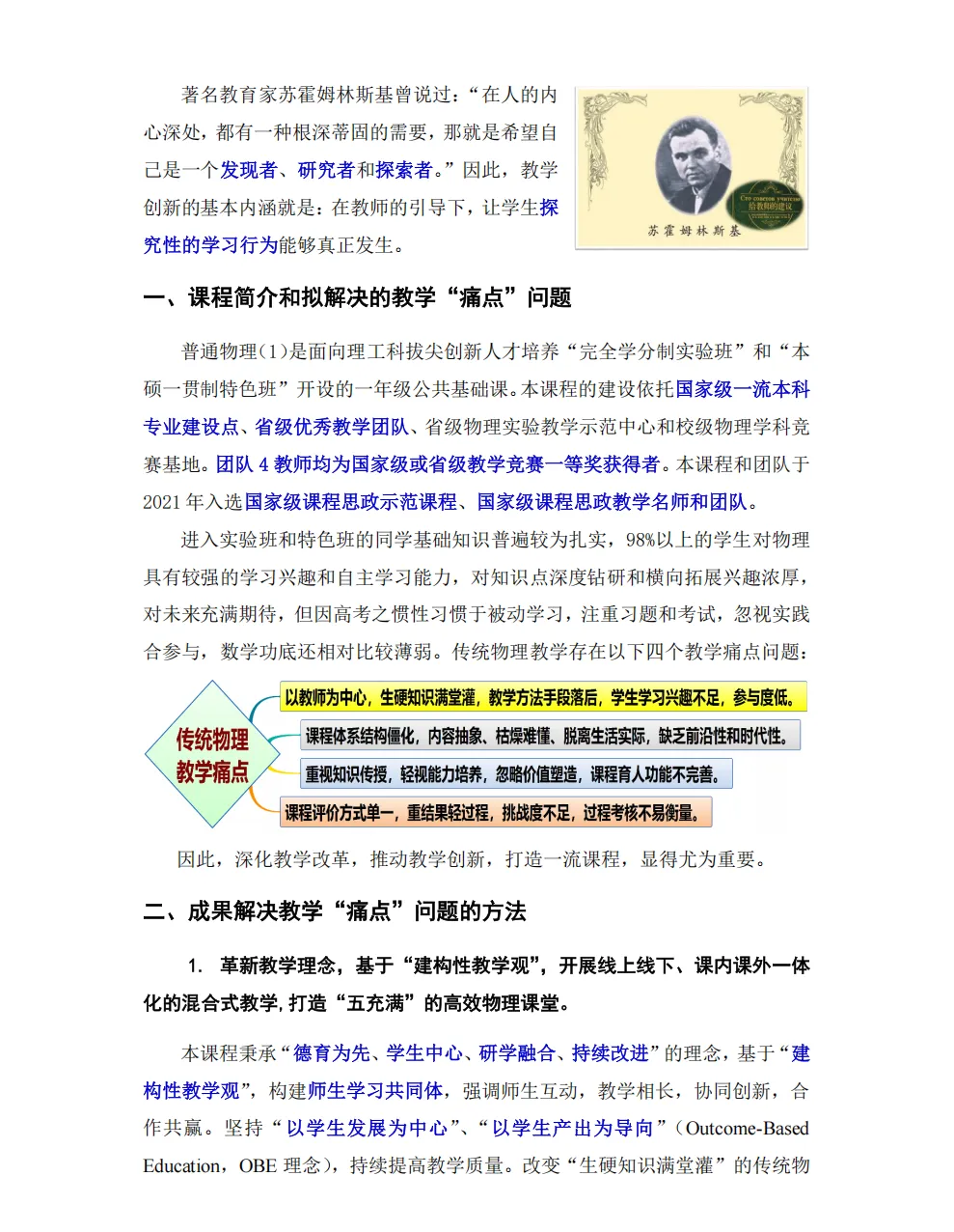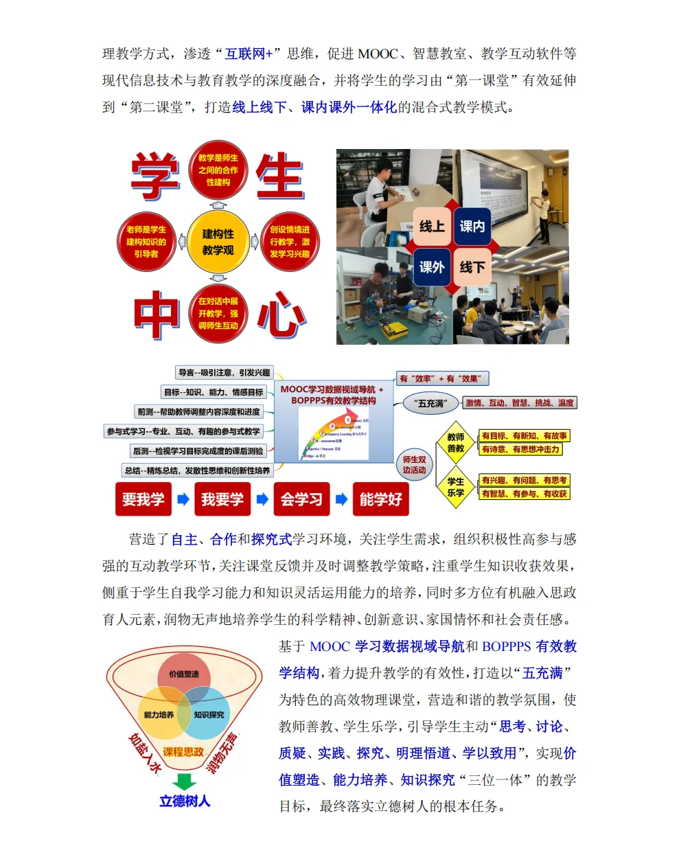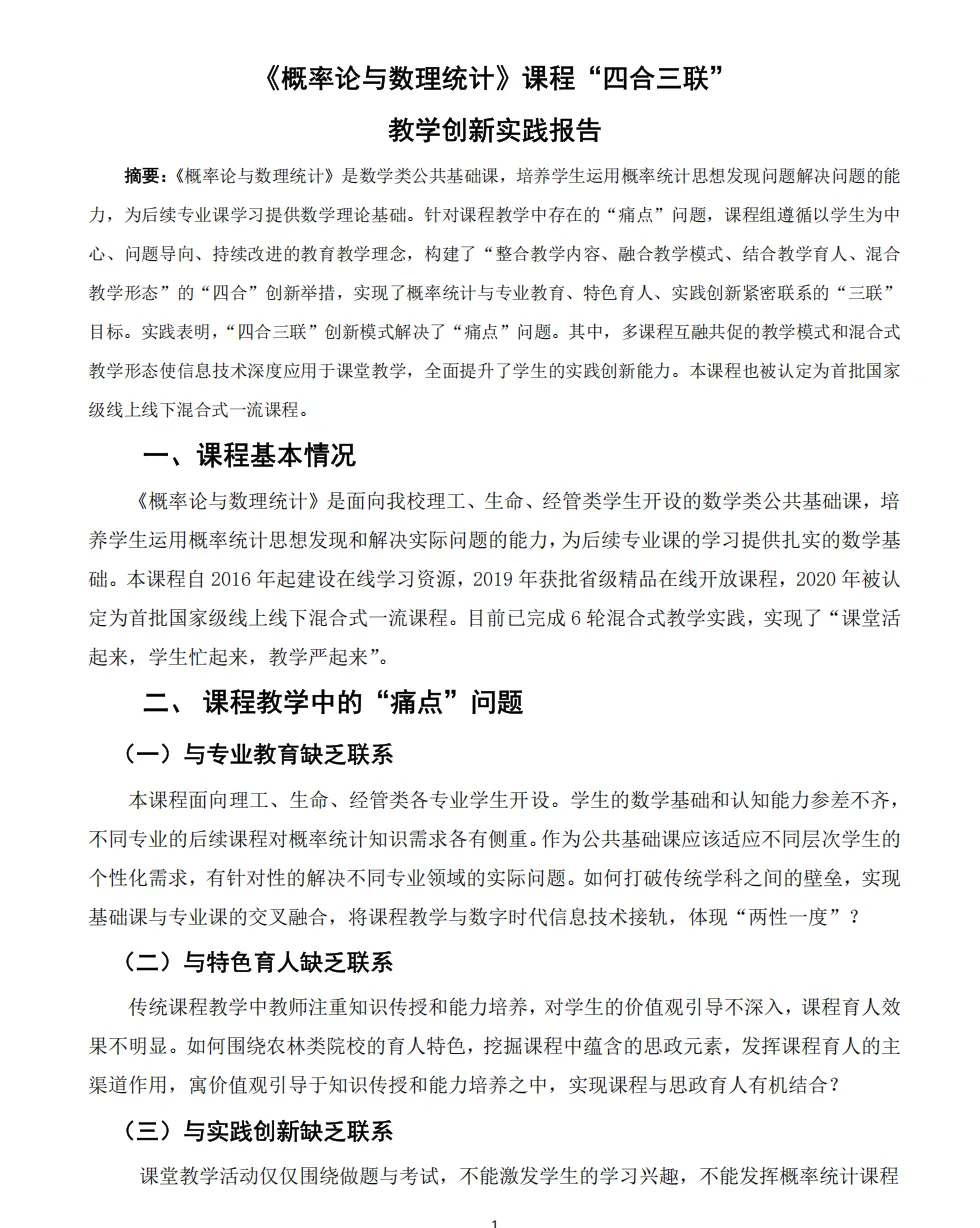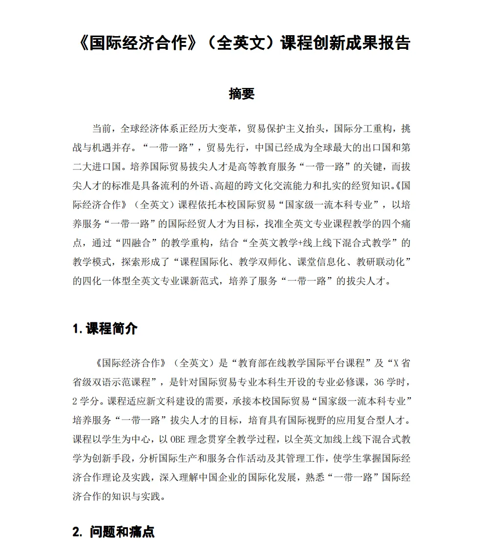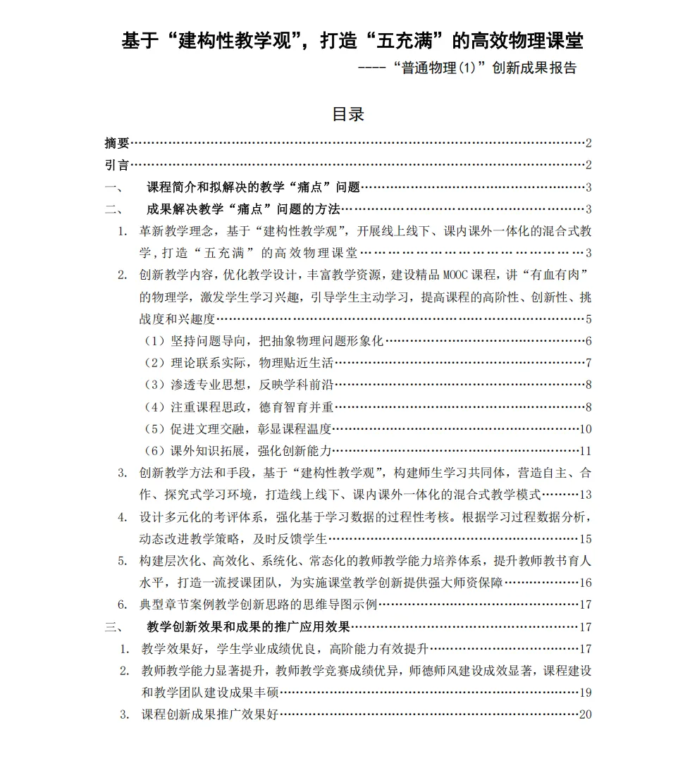 可下载 | 4份教学创新大赛一等奖教学创新成果报告分享本文汇编了4份首届全国高校教师教学创新大赛部分获奖团队的教学创新成果报告,希望对老师们打开创新思路有帮助。篇幅原因,文中仅展示部分,完整内容可下载:关注下方公众号在公众号后台回复【公众号资料】下载完整内容基于“建构性教学观”打造“五充满”的高效物理课堂基于共同构建法的燃烧学创新与实践《概率论与数理统计》课程“四合三联”教学创新实践报告《国际经济合作》(全英文)课程创新成果报告END来源:师培联盟。版权归原作者或平台所有,本号尊重原创,转载旨在分享,如有版权问题请联系删除。觉得不错 点个“在看”
