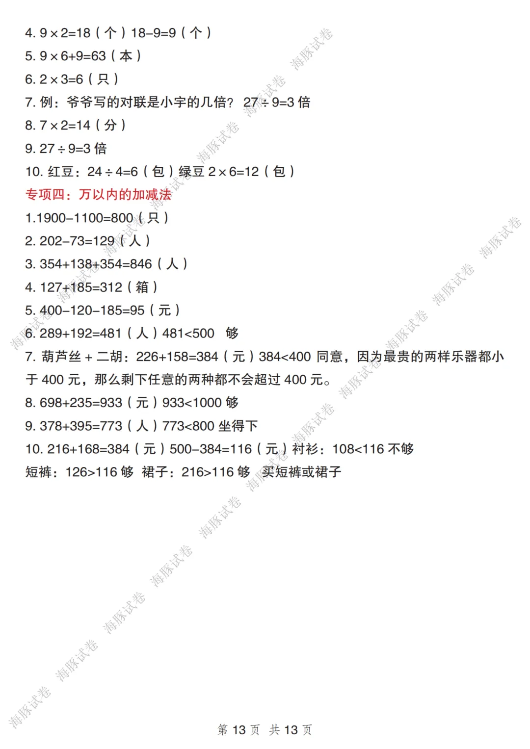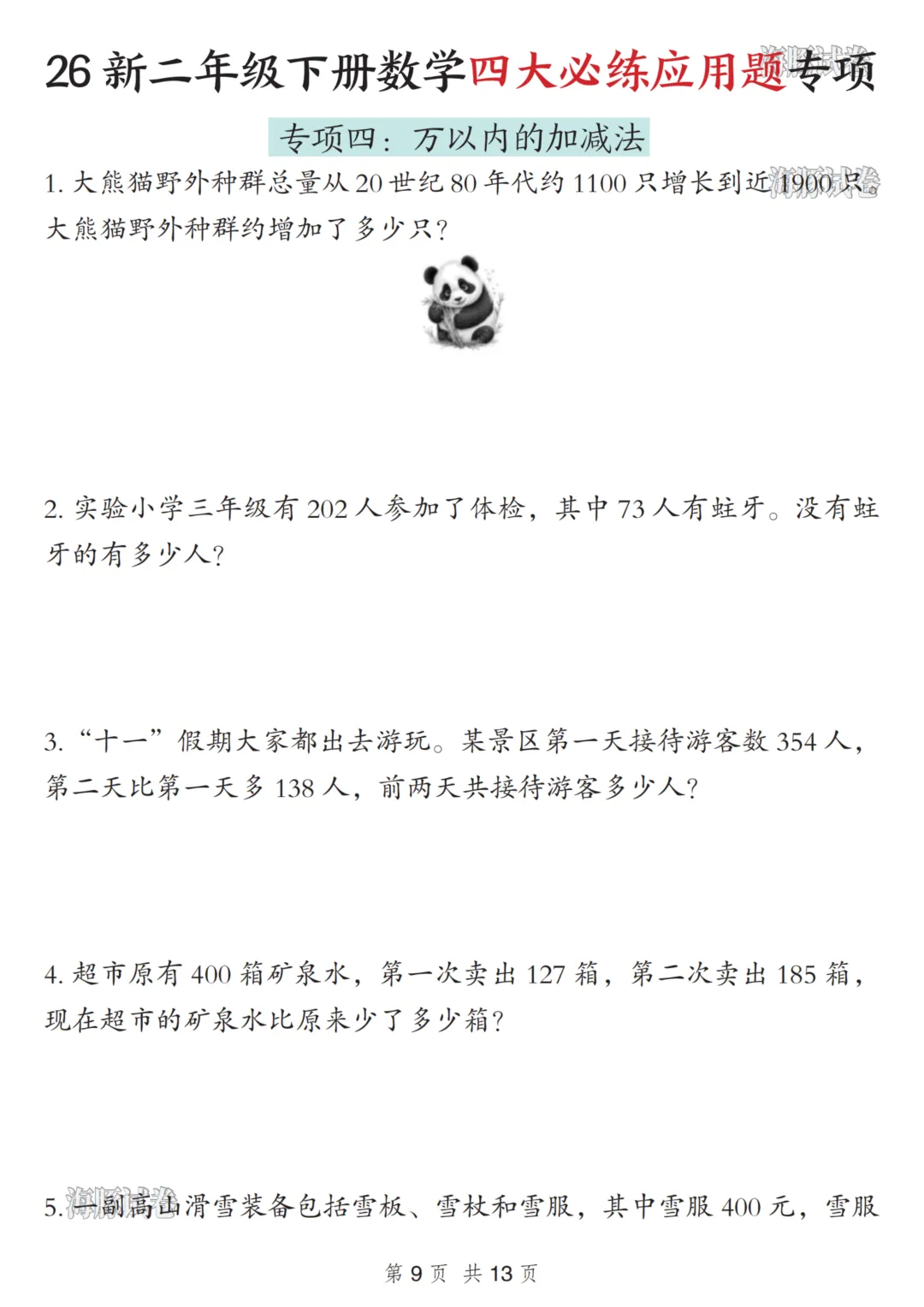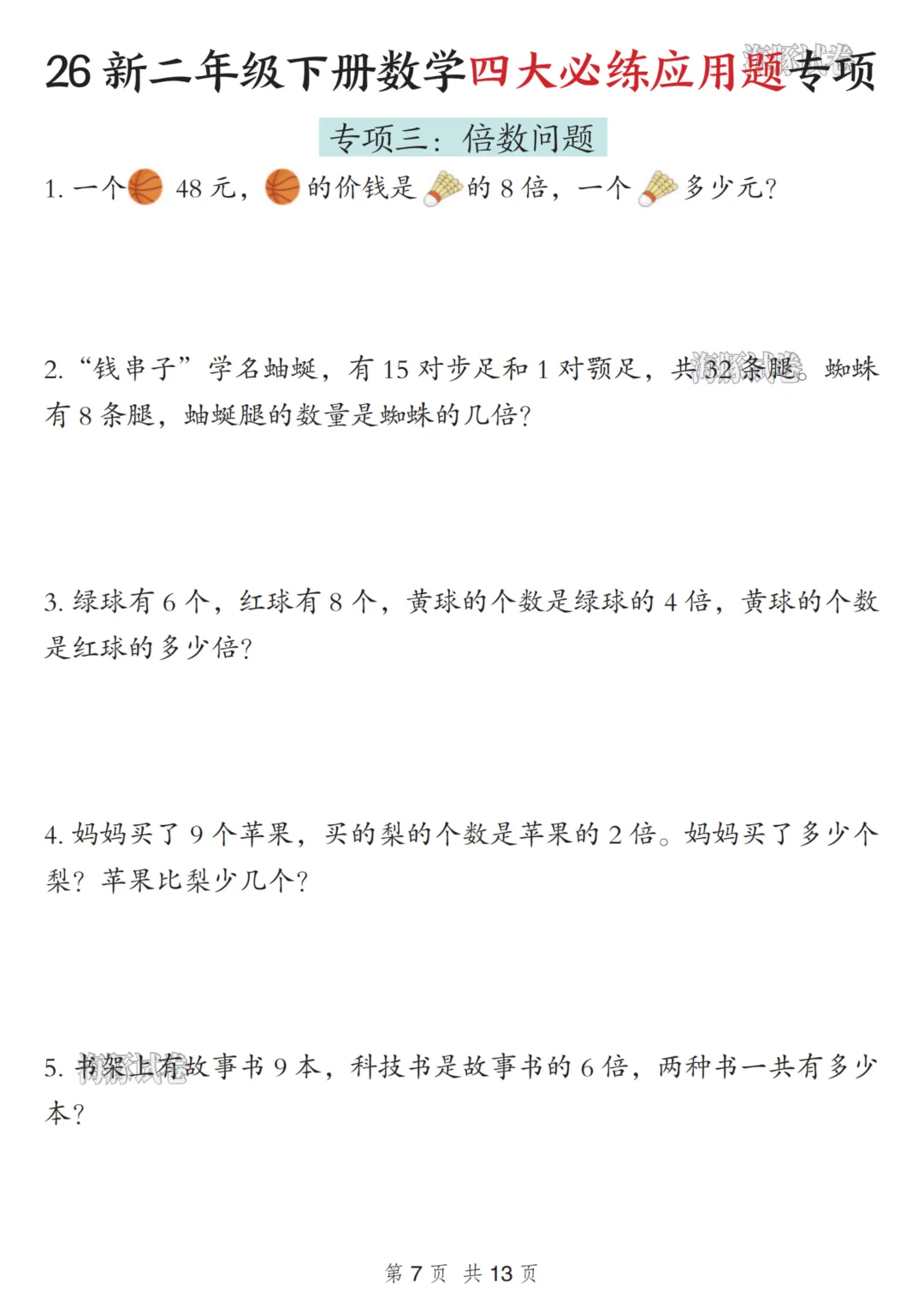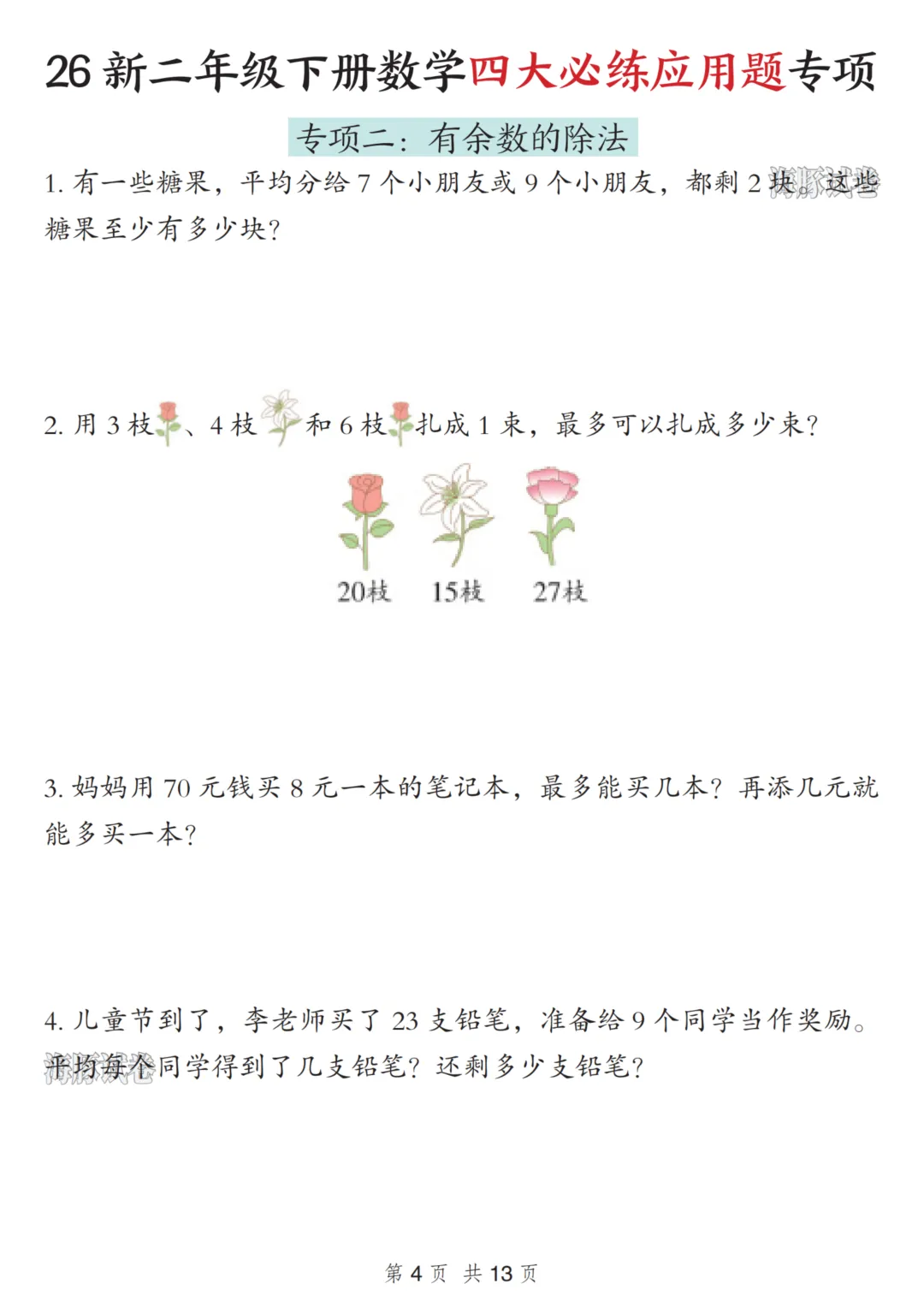 二年级(下)数学四大必练应用题专项 可下载,可打印二年级(下)数学四大必练应用题专项电子文档下载,请拉至文末。免费领取完整电子版:①:点一点右下角的“赞”和“在看”,感谢!②:在公众号对话框中回复:0005说明:本微信公众账号分享的资源均通过网络等公共合法渠道获得,仅供试用!版权属于原出版机构或影像公司,本资源为电子载体,传播分享仅限于家庭使用与交流心得、参考和辅助购买决策,不得以任何理由在商业行为中使用,若喜欢此资源,建议购买实体产品。文章中的视频及图片均来自网络,版权归原作者或原出版社所有。如有侵权,请及时联系删除