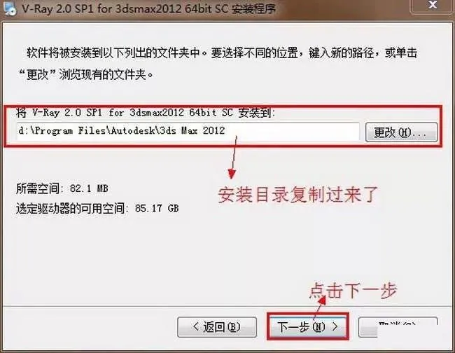 7.设置安装路径,安装路径最好是设在与相对max的安装目录里。要是你的电脑里多安装了几个max,就容易出错。点击下一步。