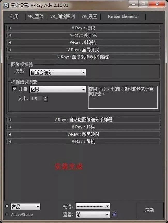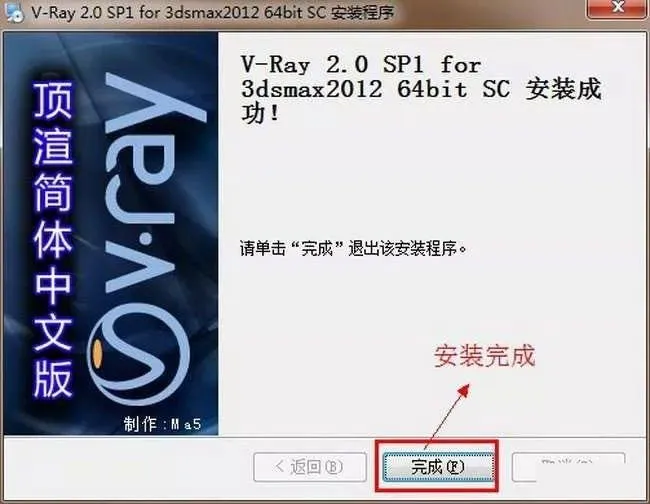 11.vray2.0 3dsmax2012 64位中文版安装完成。