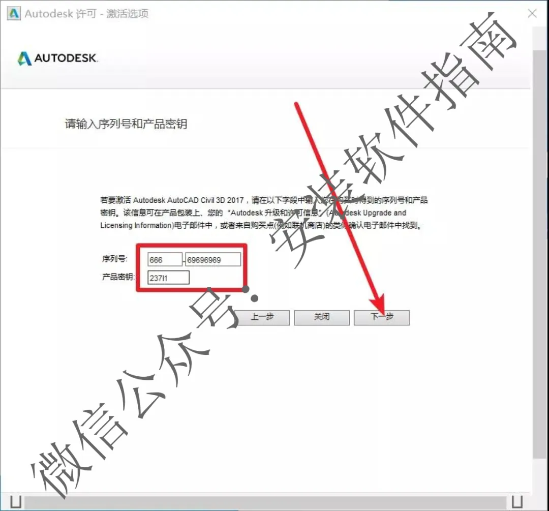 17.输入序列号:666-69696969,密钥:237I1,点下一步