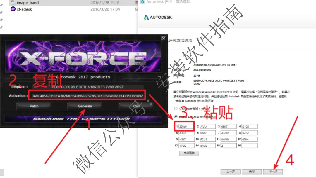 21.点Generate,复制步骤2方框中生成的激活码,粘贴到步骤3的红框中,点下一步