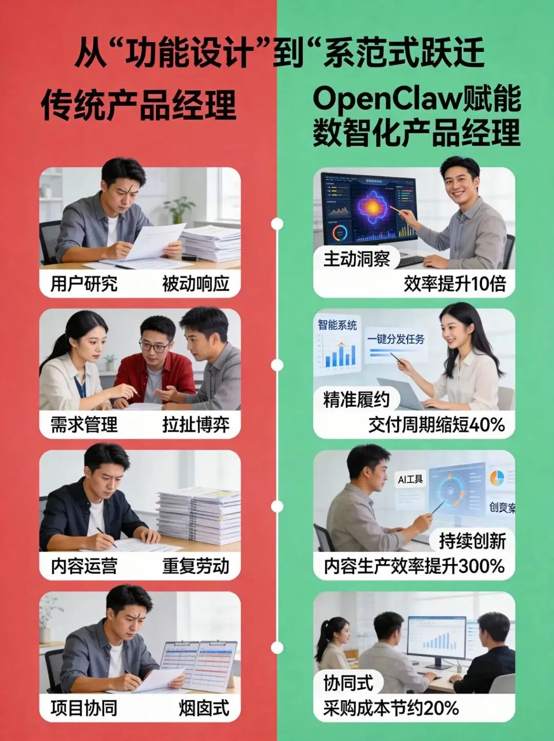 OpenClaw的出现,为产品经理带来前所未有的能力升级。让我们通过实战案例,看看它如何解决传统工作痛点。