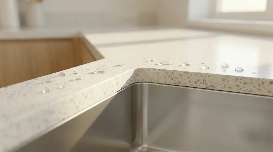 卫生死角多到崩溃: 最大的坑!台盆边缘和台面的接缝处会产生一个约 2-3mm 的凸起高度。这意味着你无法把台面上的积水“顺手”扫进盆里。