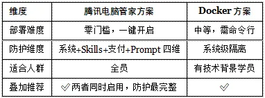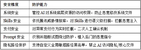 Table 1: 腾讯电脑管家「龙虾管家」五大安全维度