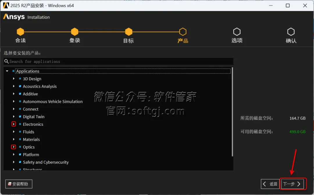 ANSYS2025版本包含旗下众多模块,只勾选自己需要使用的产品模块即可。