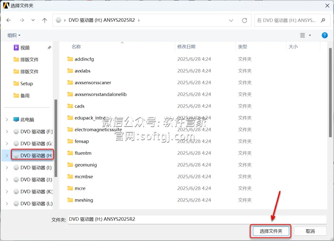 23.选择安装包解压后的【ANSYS2025 R2(64bit)】文件夹中【Crack】文件夹下的【license】,点击【打开】。