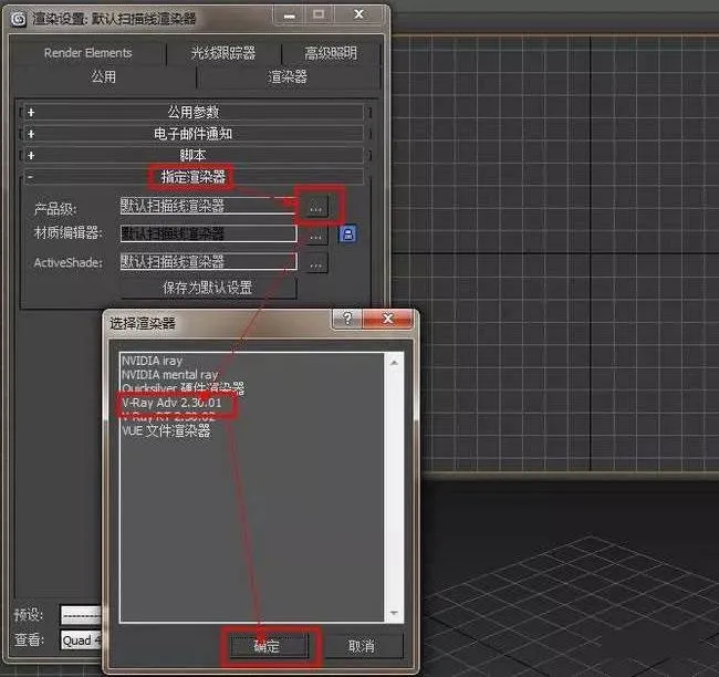 15.检查vray2.3是否安装成功。运行3dsmax2013 ,按键盘F10渲染设置-指定渲染-渲染器选择-vray adv 2.3-确定。