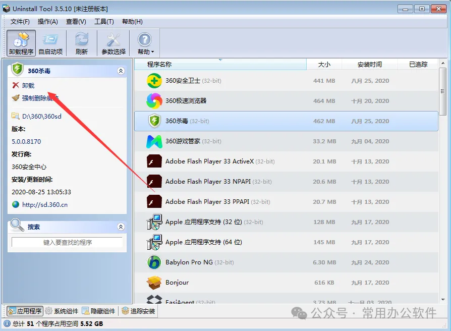 4、批量卸载软件: