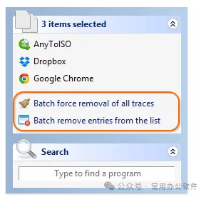 批量删除使用强大的卸载向导来查找和删除剩余的文件。
